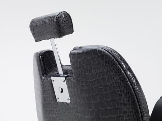 Кресло для клиента – мужское, выполнено из высококачественного поролона, каркас обтянут искусственной кожей, с выдвижным подголовником и откидной спинкой. Подлокотники выполнены из пластика, пластиковая подставка под ноги. Комплектуется гидроподъемником с фиксацией поворота, дисковая основа.