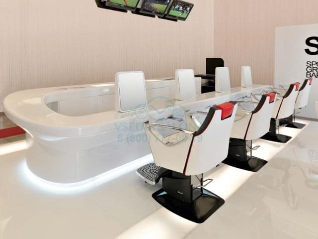 Кресло Sporting, в Вашем мужском салоне, может целиком изменить дизайн и внешний вид всего салона, а Ваш клиент, представитель сильной половины человечества, сидя в этом кресле, хоть на секунду почувствует себя пилотом. Регулируемые спинка, подножка кресла делают это кресло удобным как для клиента, так и для Вашего мастера. Глубоко утопаемый в спинку кресла подголовник никогда не будет мешать при комбинировании этого кресла с парикмахерской мойкой.