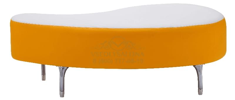 Двухместная банкетка для ожидания выполнена в форме капли, обтянута искусственной кожей, ножки из металла.
