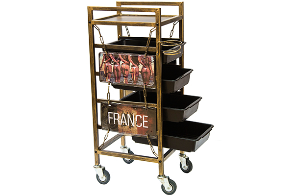 Барбершоп тележка "Ironic Rack 2" оснащена тремя глубокими ящиками, два из которых изготовлены из высококачественной стали. Прорезиненные колесные опоры со стопорами обеспечивают низкий уровень шума при передвижении.