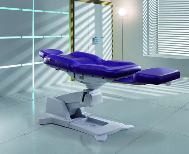 Кресло имеет четыре электродвигателя, при помощи которых осуществляется регулировка положения оборудования. Все манипуляции выполняются при помощи кнопочного пульта или педали. Производителем предусмотрена функция возврата в начальное положение. Благодаря тому, что матрас не имеет швов, существенно упрощается его уборка. Модель также оснащена регулируемым и съемным подголовником, что обеспечивает комфорт для клиента и облегчает доступ для специалиста.