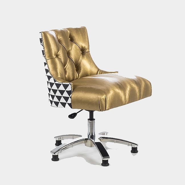 Желаете поразить клиентов своего салона красоты оригинальностью и изысканностью? В таком случае рекомендуем оставить выбор на кресле клиента маникюра «Калиф». Внешне оно достаточно необычное, так как выполнено из прочной искусственной кожи в золотом оттенке. Внешняя сторона изделия создана в черно-белую клетку. Не в каждый интерьер впишется такая мебель, но если рискнете и дополните помещение такой функциональной мебелью, заметите, насколько увеличится количество клиентов у мастеров. В целом, оттенок кресла можно подобрать и самостоятельно, уточняйте нюансы у консультантов магазина, они круглосуточно на связи и готовы помочь вам.