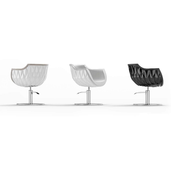 Дизайнерское парикмахерское кресло. Кресло для клиента комплектуется дисковым основанием из нержавеющей стали и гидроподъемником с блокировкой. Кресло оснащено декоративным лакированным каркасом и комфортными подлокотниками. Обивка - искусственная кожа высшего качества.