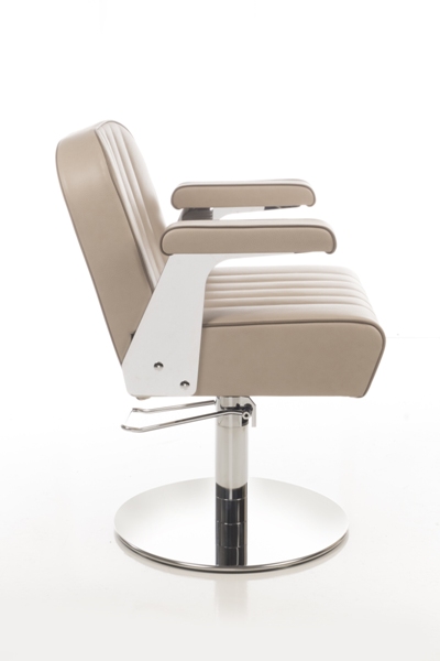 Кресло для клиента комплектуется дисковым основанием из нержавеющей стали и гидроподъемником с блокировкой. Кресло оснащено мягкими и комфортными подлокотниками. Обивка - искусственная кожа высшего качества.