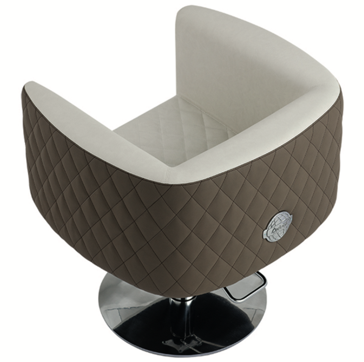 Кресло парикмахерское "SABRINA" - на металлическом и многослойном деревянном каркасе со спинкой, сиденьем и подлокотниками из пенополиуретана. Алюминиевая база с поворотным механизмом и гидравлическим насосом. Доступны различные варианты отделки.