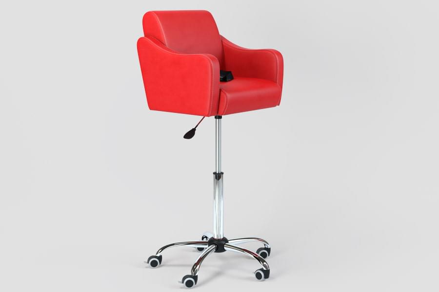 Кресло "Soprano mini" детское отличают плавные закругленные линии спинки и подлокотников, контрастная отделка светлой нитью — это придает ему элегантности. В качестве декоративного элемента используется ремешок-пряжка на боковой части. Кресло отделано долговечной и практичной экокожей, основа — пневматический подъемник и хромированное пятилучье на колесах с двумя фиксаторами движения. Имеются ремни безопасности.