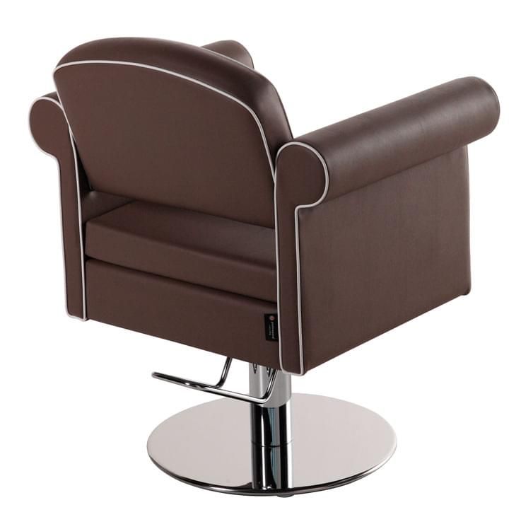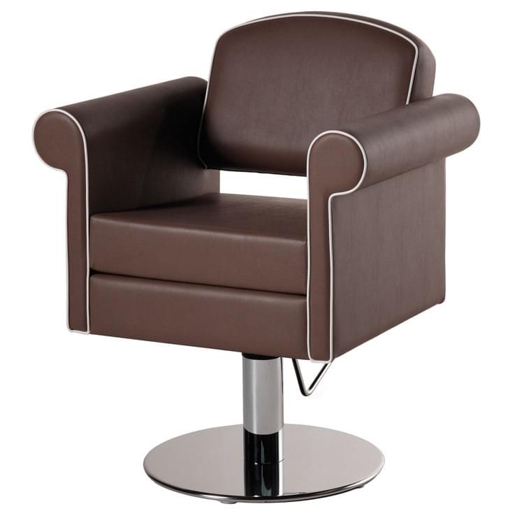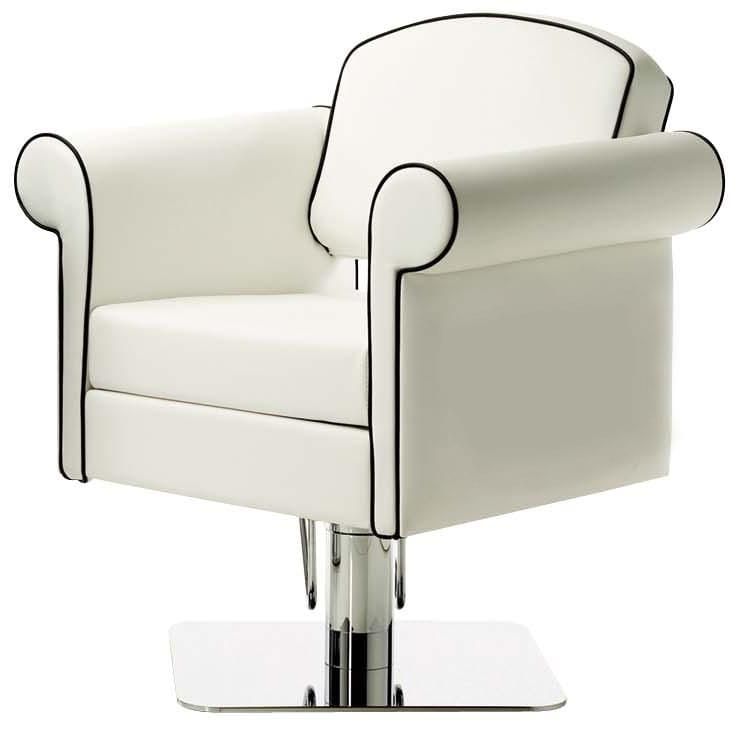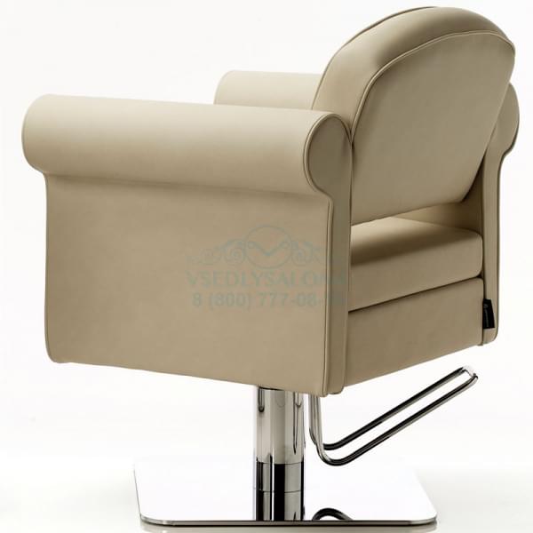 Кресло для клиента оригинальной формы, выполнено из высококачественного поролона, каркас обтянут искусственной кожей, мягкие подлокотники. Отличается наличием декоративных швов. Комплектуется стационаром, гидроподъемником с основанием на выбор: диск, квадрат. Размер (ДхШ):65х66
