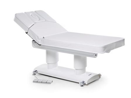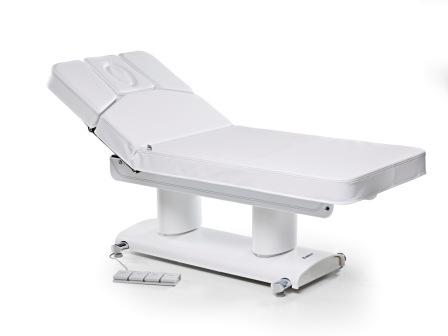 Особенностью модели является матрас с особой формой. В нем предусмотрены регулируемые подлокотники и подголовник с отверстием для лица с заглушкой. За счет этого клиент получает возможность полностью расслабиться, а массажист может без затруднений выполнять любые виды массажа. Кушетка подходит для проведения различных СПА-процедур для тела и лица.