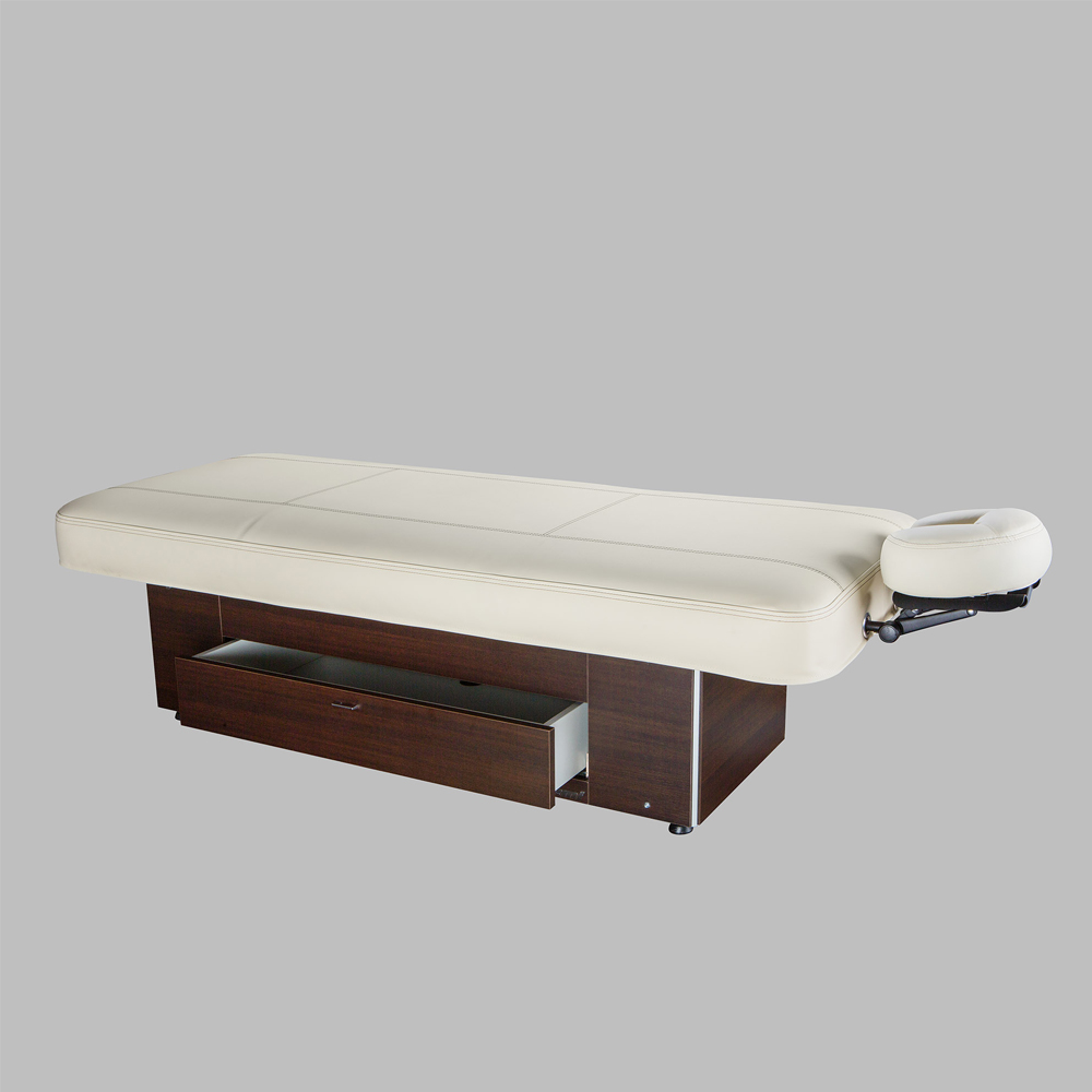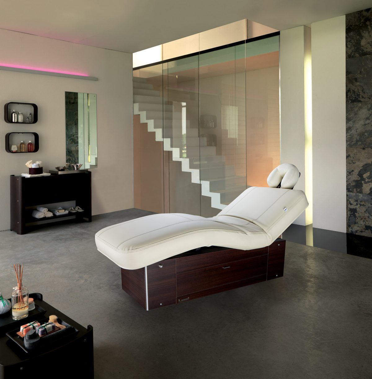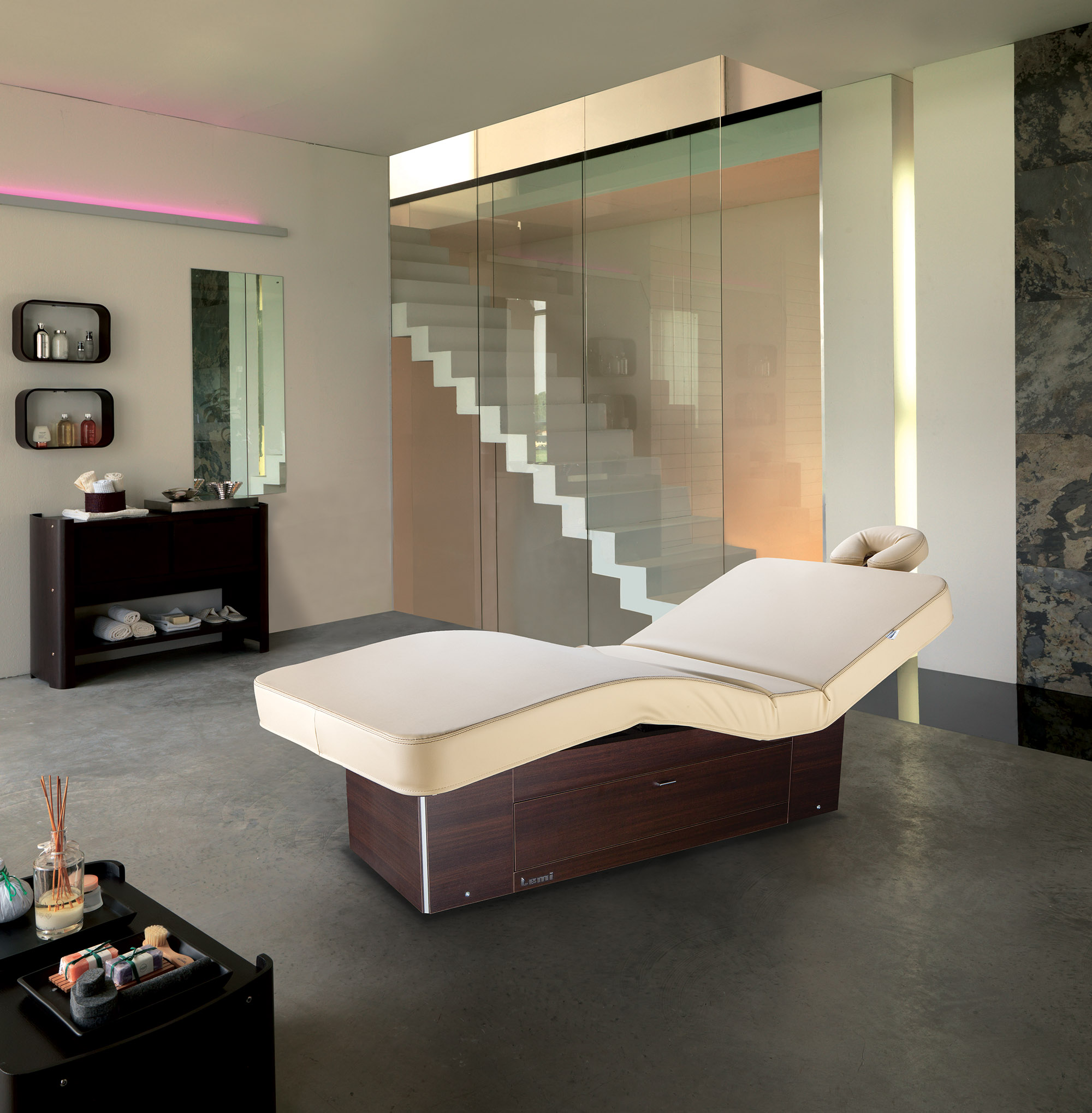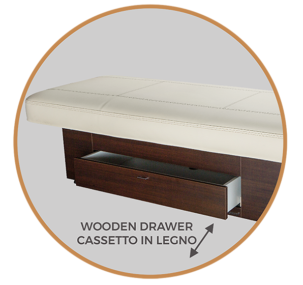 Многофункциональная кушетка "PORTOFINO" - для массажа и SPA процедур для лица и тела, способна обеспечить максимальный комфорт, а также совмещает в себе практичность и оптимизацию рабочего пространства. Кушетка оснащена тремя электромоторами, с помощью которых регулируются высота, наклон спинки и сидения (ножной части), регулировки осуществляются за счет ножного пульта управления. Каркас массажной кушетки выполнен в виде шкафа с выдвижным ящиком, для хранения аксессуаров, инструментов, косметических продуктов. Основание кушетки изготовлено из натурального дерева. Широкая цветовая палитра искусственной кожи, на заказ.