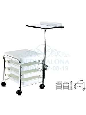 Чтобы стойку было проще перемещать, предусмотрели колесики, а регулируемая полка настраивается индивидуально, так, как удобно мастеру или клиентам. Разместить эту модель можно в любом пространстве, независимо от размеров площади.