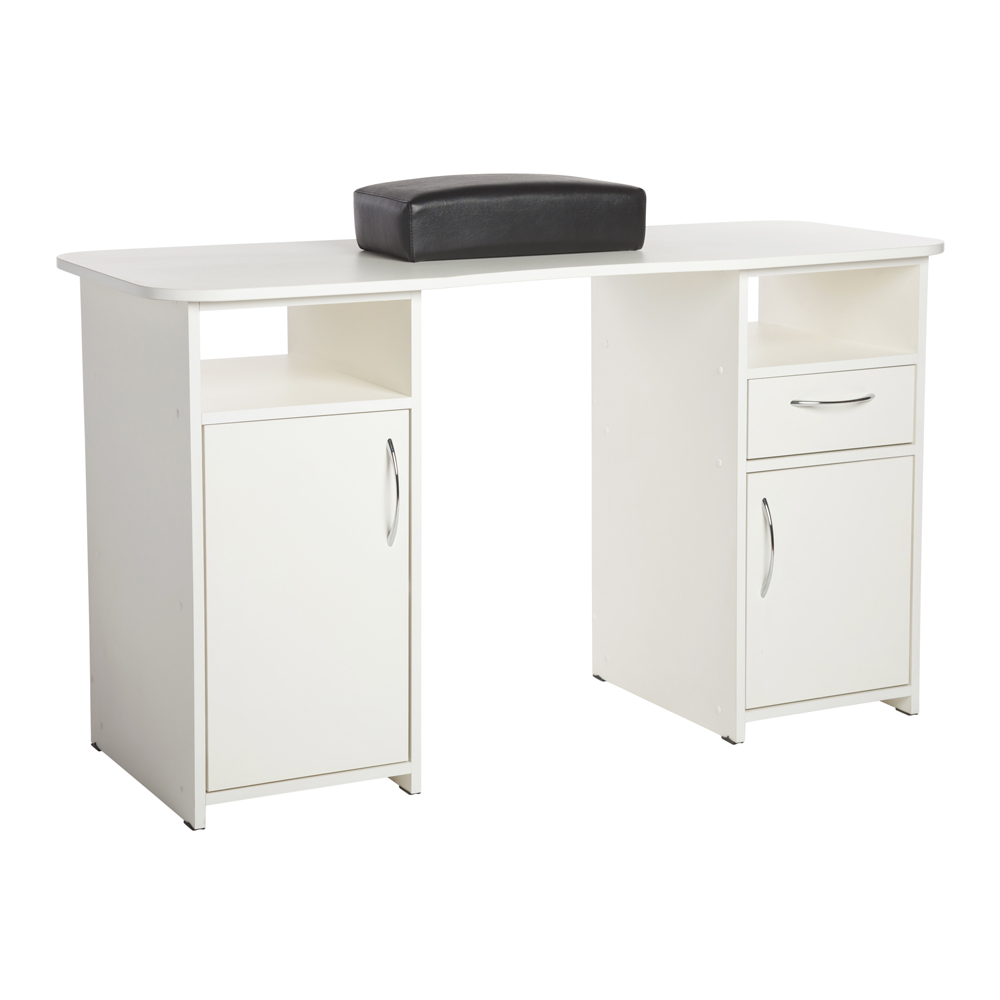 Стол двухтумбовый, в одной тумбе расположены – сквозная ниша, выдвижной ящик и распашная дверь, в другой тумбе – сквозная ниша и распашная дверь.