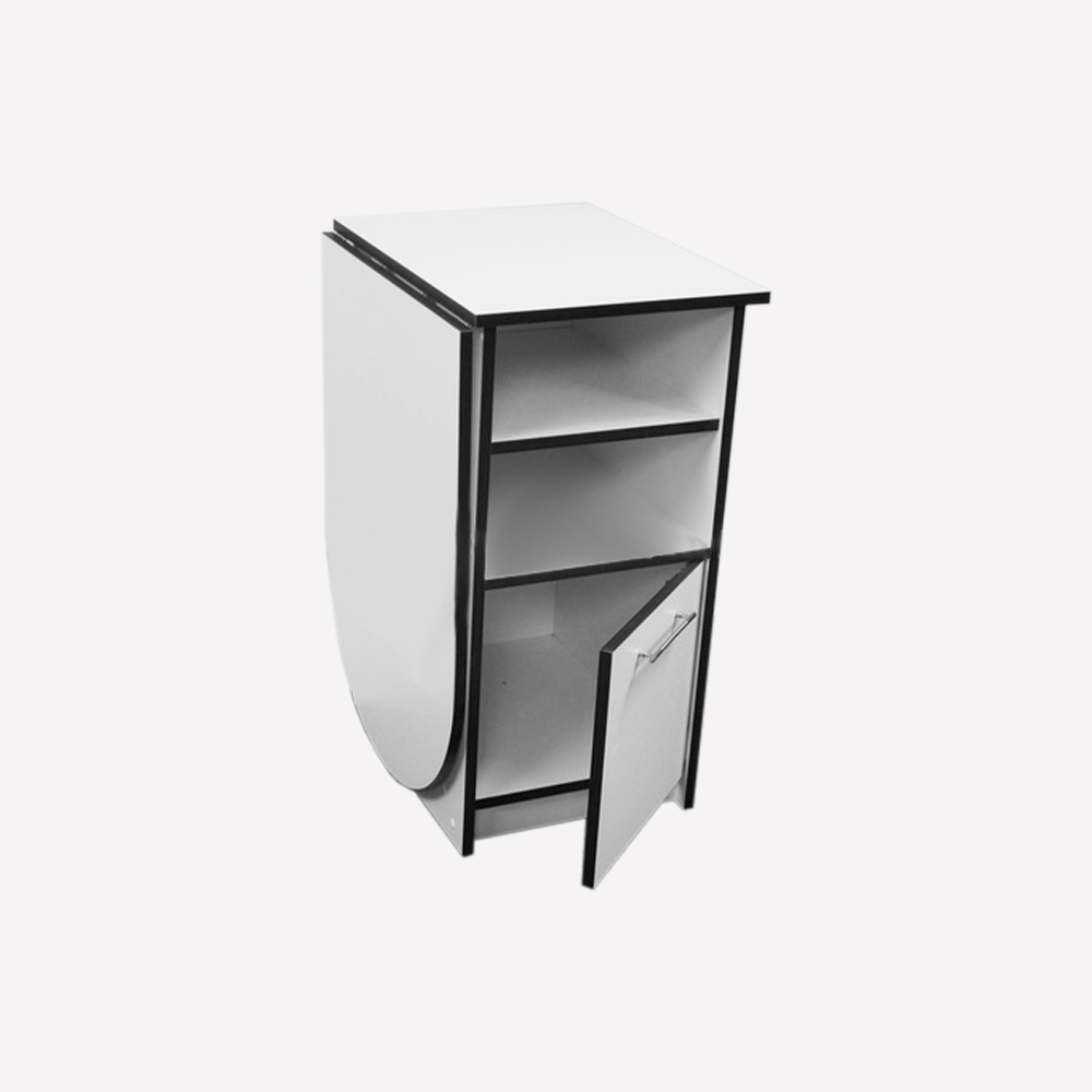 Складной маникюрный стол с тумбой "Ever" в сложенном виде занимает вдвое меньше пространства. Это экономит площадь и позволяет с комфортом работать даже в маленьких кабинетах. Есть вместительная тумба и полка под столешницей.