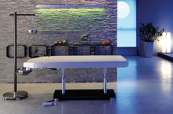 Кушетка для массажа «Journey Room» подходит для выполнения различных СПА-процедур, в том числе, и аюрведы. Модель укомплектована системой педального управления и одним электрическим двигателем, за счет которых регулируется высота кушетки. Это упрощает для клиента процесс размещения на кушетке, а также повышает комфорт мастера.
