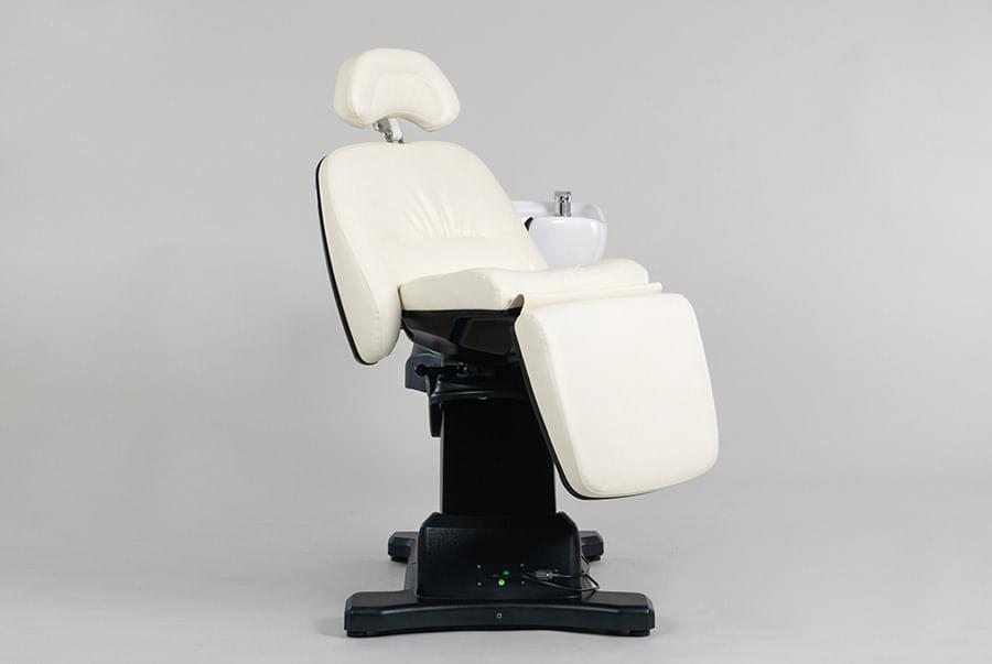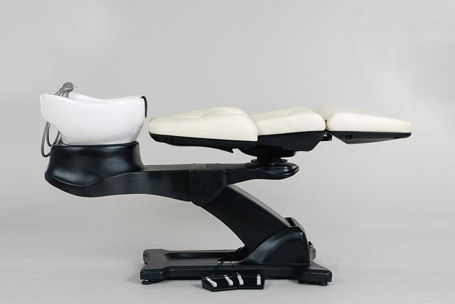 Стильный внешний вид, максимальное удобство для клиента и мастера, возможность регулировать положение с помощью ножного пульта делают мойку непревзойденной по качеству и комфорту. Можно использовать как кушетку или кресло.