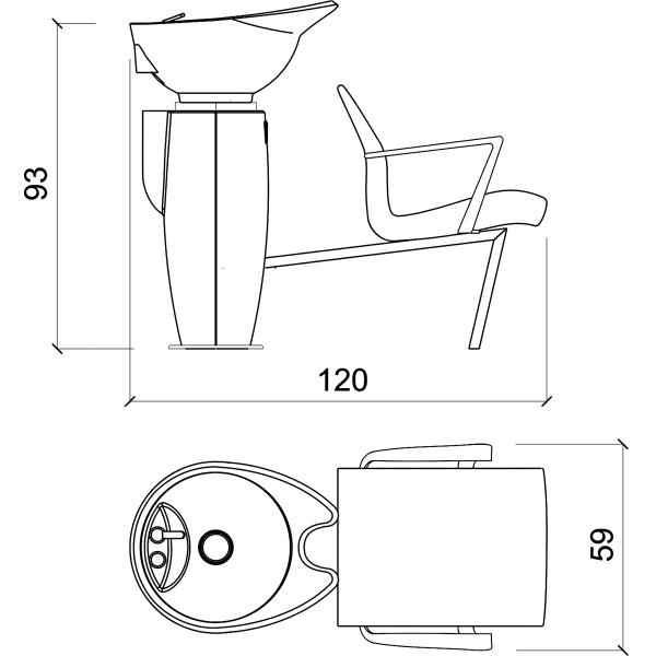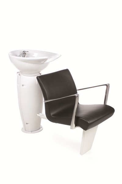 Мойка оснащена пластиковым каркасом белого или черного цвета и алюминиевыми подлокотниками. Мойка комплектуется глубокой керамической раковиной с регулировкой угла наклона и комплектом смесителя.