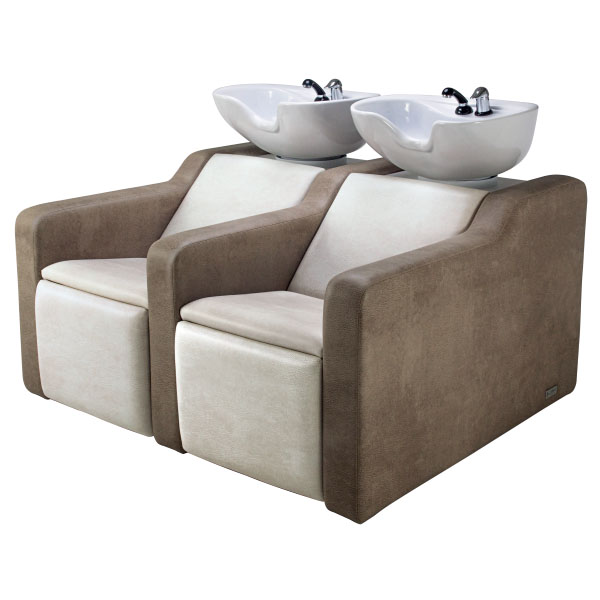 Двойная мойка, с металлическими полками для шампуней. Мойка комплектуется глубокими керамическими раковинами с регулировкой угла наклона и комплектами смесителей. Кресла оснащены электрическим подъемом подножных частей. Мягкие элементы кресел обтянуты искусственной кожей высшего качества, мягкие подлокотники.