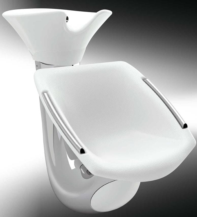 Мойка с креслом, на хромированном металлическом каркасе с черной или белой пластиковой вставкой. Мойка комплектуется глубокой керамической раковиной с регулировкой угла наклона и комплектом смесителя. Мягкие элементы кресла обтянуты искусственной кожей высшего качества, подлокотники из черного или серебристого пластика.