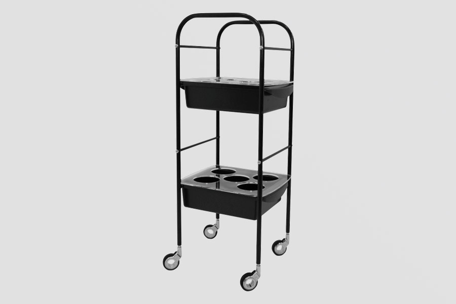 Парикмахерская тележка Т-30 оснащена глубокими и вместительными ящиками для парикмахерских принадлежностей, а также фенодержателем для еще большего удобства работы. Она выполнена в классическом черном цвете, что делает ее универсальной моделью практически для любой современной парикмахерской или барбершопа.
