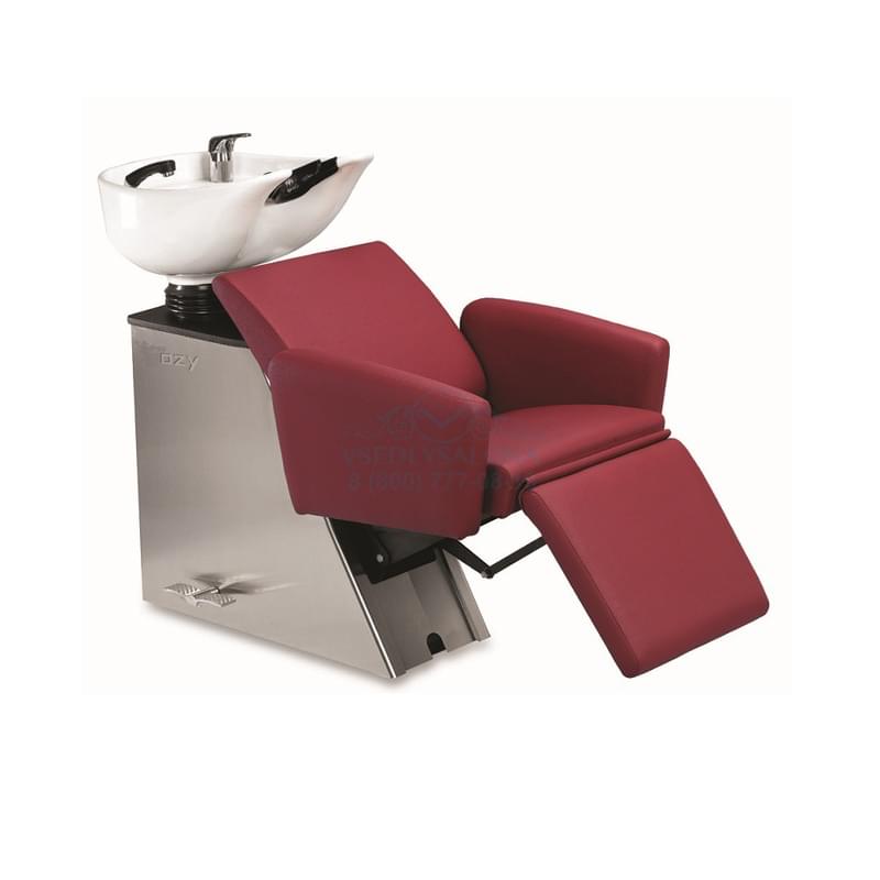 Простая и надёжная парикмахерская мойка. Синхронная регулировка спинки кресла и подножки. Удобная педать рерулировки кресла, всегда рядом с мастером. Регулируемая керамическая раковина.