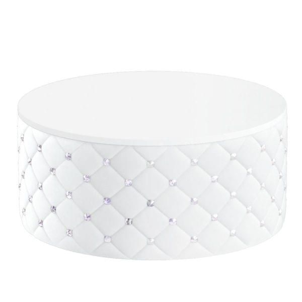 Все предметы выполнены в одном стиле, изюминкой дизайна является каретная стяжка. Ее особенность заключается в использовании стразов вместо мебельных гвоздиков. Мебель и зеркала обшиты искусственной износостойкой кожей, каркас изготовлен из ламинированного ДСП, металлические элементы – из хромированной стали.