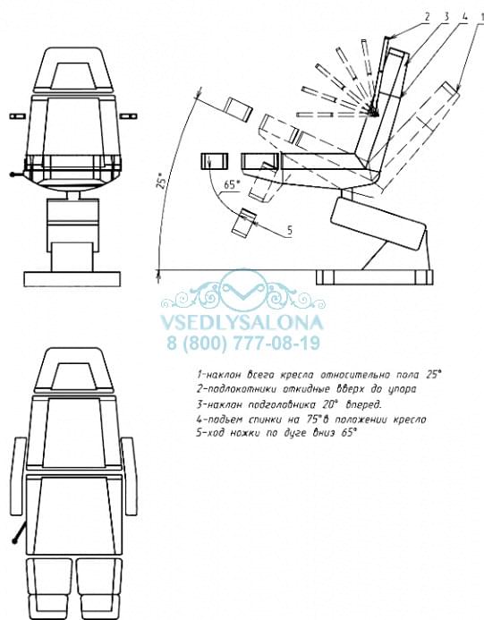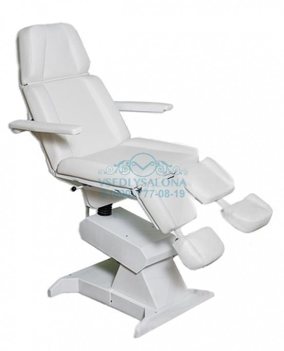 Педикюрное кресло "Профи 3" изготовлено на трех моторах, при помощи которых кресло можно поднимать и опускать, изменять угол наклона спинки и угол наклона кресла.