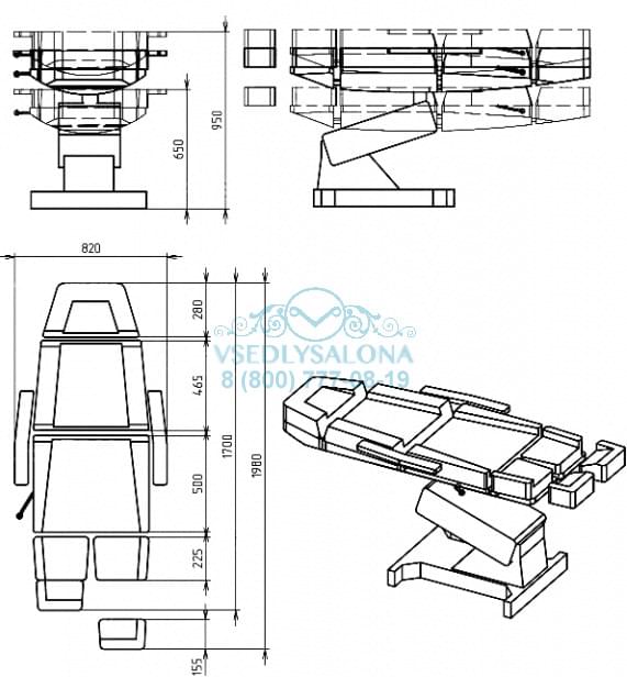 Размер (ДxШхВ): 1700-1980х820х650-950 мм.