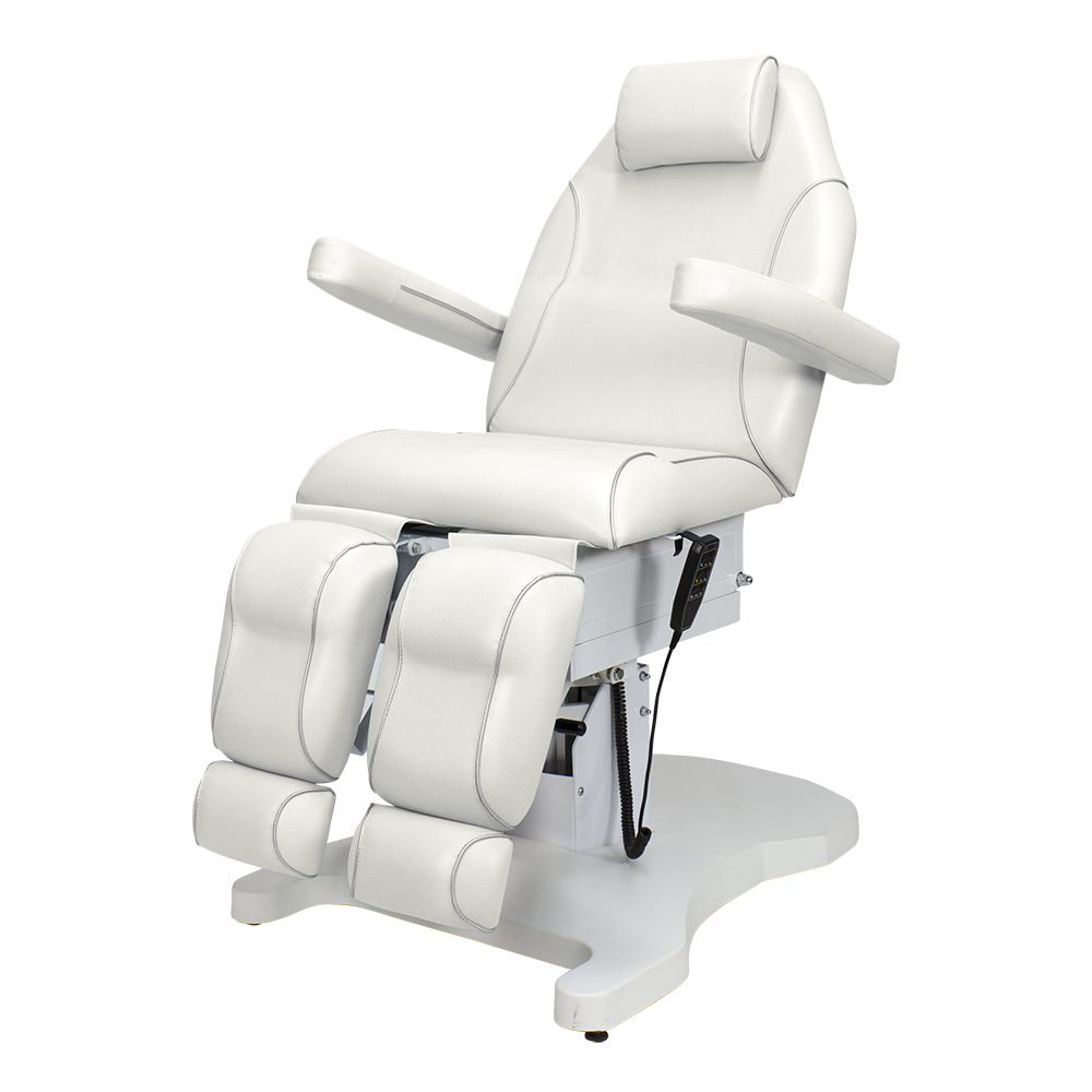 В кресле предусмотрена высокая спинка и подголовники, есть подлокотники, подушки, выступы для ног. Регулировать высоту и наклон можно при помощи пульта управления. поэтому ваши клиенты будут чувствовать себя хорошо даже при долгих процедурах.