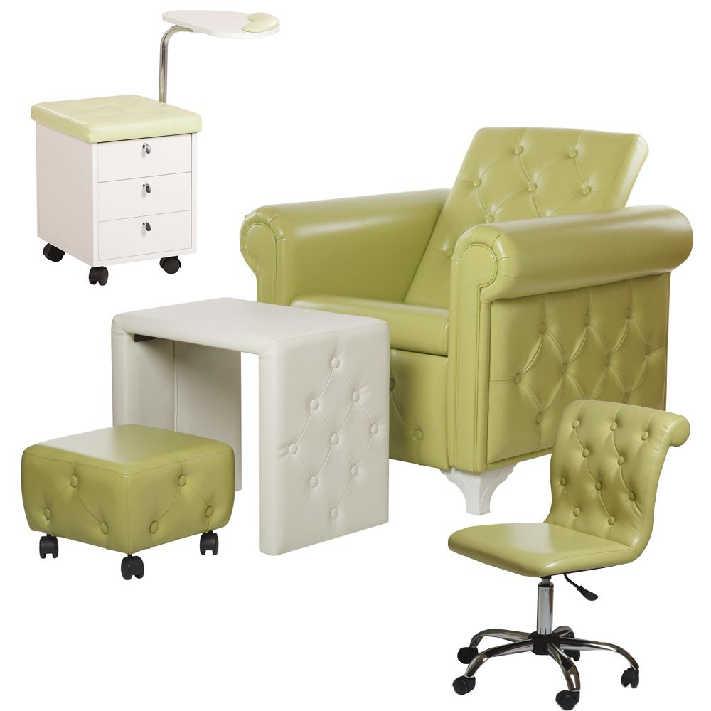 Удобный пуф для мастера маникюра на колесах с декоративными пуговицами, которые украшают внешнюю часть пуфа. Габариты: 38(Ш) x 28(В) x 38(Г)