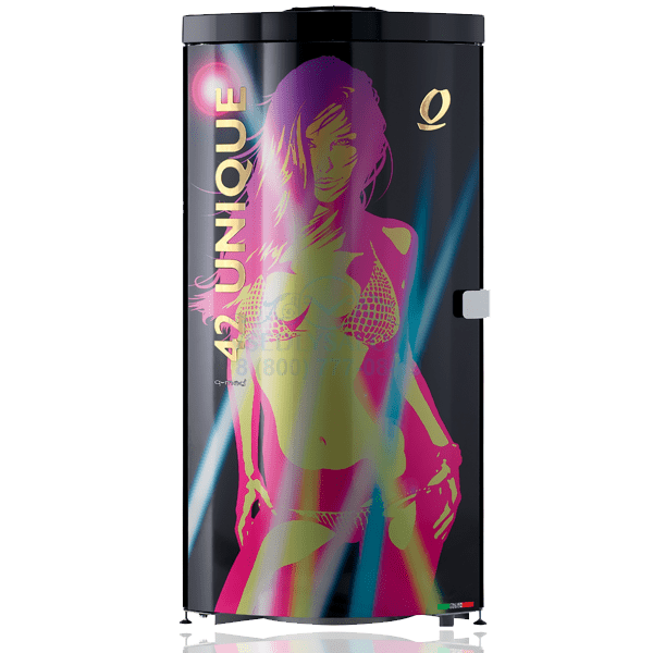 Солярий "42 Unique 100 Fashion Black" – профессиональное, новое оборудование, которое отвечает мировой сертификации, при том, что используется настоящими мастерами как некий атрибут современного стиля, и соответственно, может предоставлять СПА услуги, а именно классический загар с ионизацией воздушного потока. Этот комплект состоит из прочного корпуса, ламп накаливания, вентиляторов, зеркального пола, мощной системы охлаждения и дизайнерских ручек. Он идеально впишется в объёмное помещение, создаст гармонию и шарм в дополнение к необычной компоновке. Оснащается премиальной системой циркуляции воздуха и эргономичными креплениями. Отныне можно сказать, что продукт получил высокое качество и уникальные, инженерные разработки.