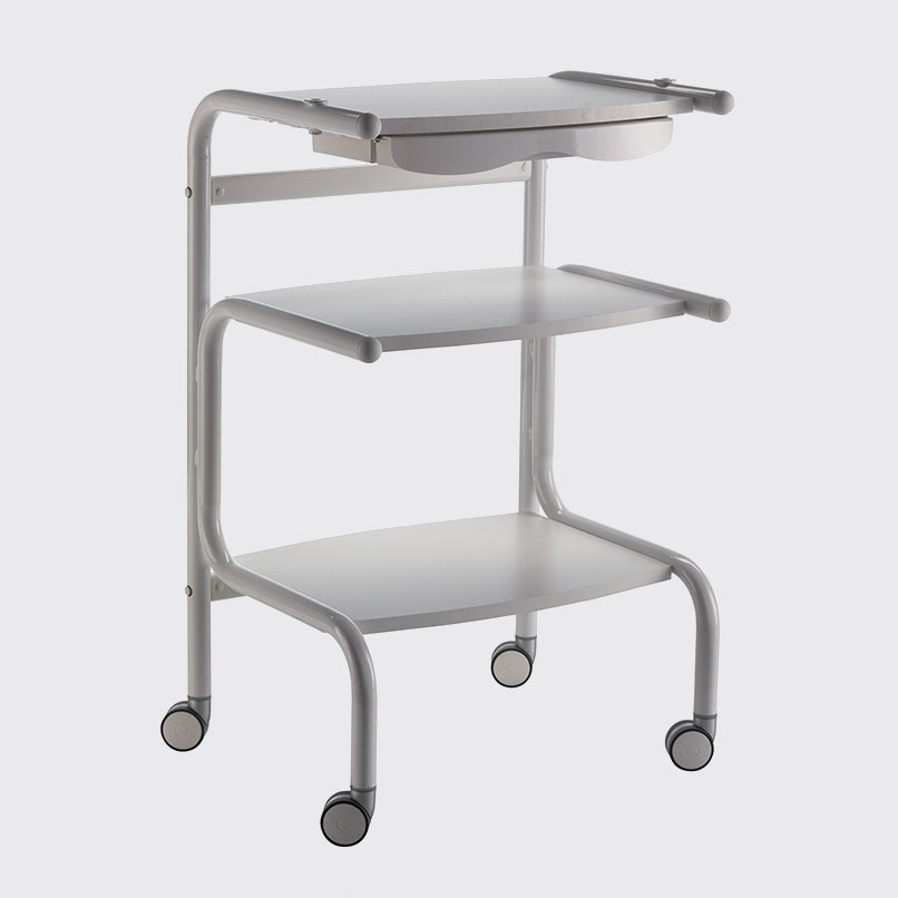 Столик "TRYLLO" – это удобный и функциональный передвижной столик. Имеет окрашенный трубчатый каркас. Комплектуется 3 полками, ящиком, расположенным под верхней полкой, и суппортом для крепления лампы-лупы. Отличается мягким дизайном, прочностью и легкостью управления. "TRYLLO" представляет собой идеальное решение для косметологических, педикюрных кабинетов, центров отдыха, салонов красоты и СПА.