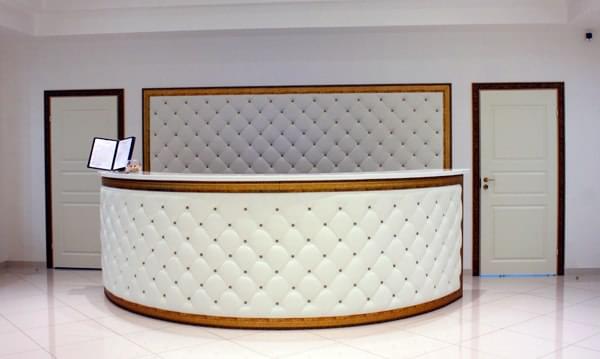 Стойка администратора ресепшн с каретной стяжкой Pieno может быть изготовлена из различных материалов,по индивидуальным размерам с большим выбором цветовой гаммы.