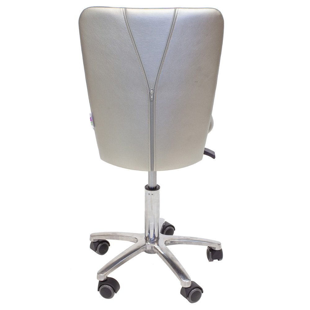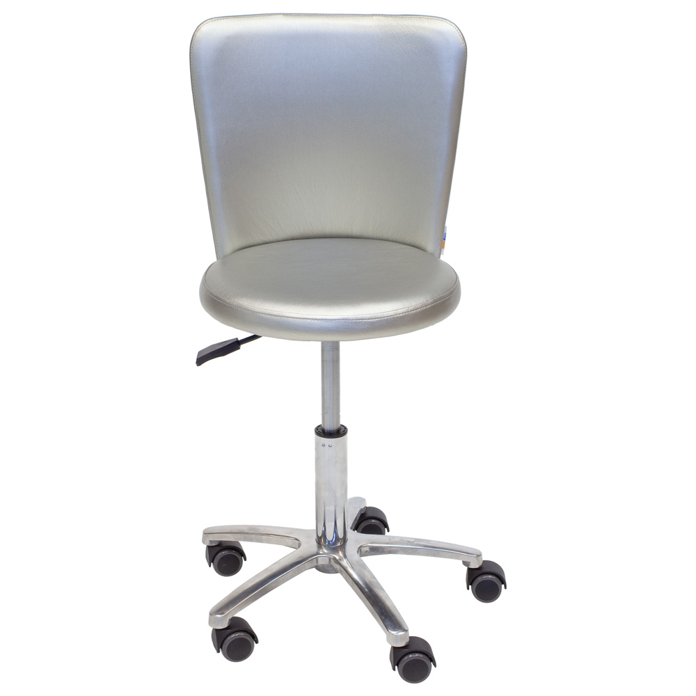Данная модель стула мастера имеет пневматический подъемный механизм низкий, благодаря чему мастер сможет отрегулировать самостоятельно необходимую высоту. Стандартная комплектация стула предусматривает обивку эконом класса, однако по вашему желанию ее можно изменить. Опорой является пятилучье хром, которое также можно заменить.