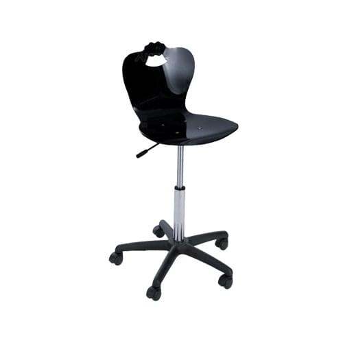 Стул для мастера выполнен из пенополиуретана, основание пластиковое пятилучье черного цвета на колесах, регулировка высоты пневматическая. Вариант цвета: черный, белый.