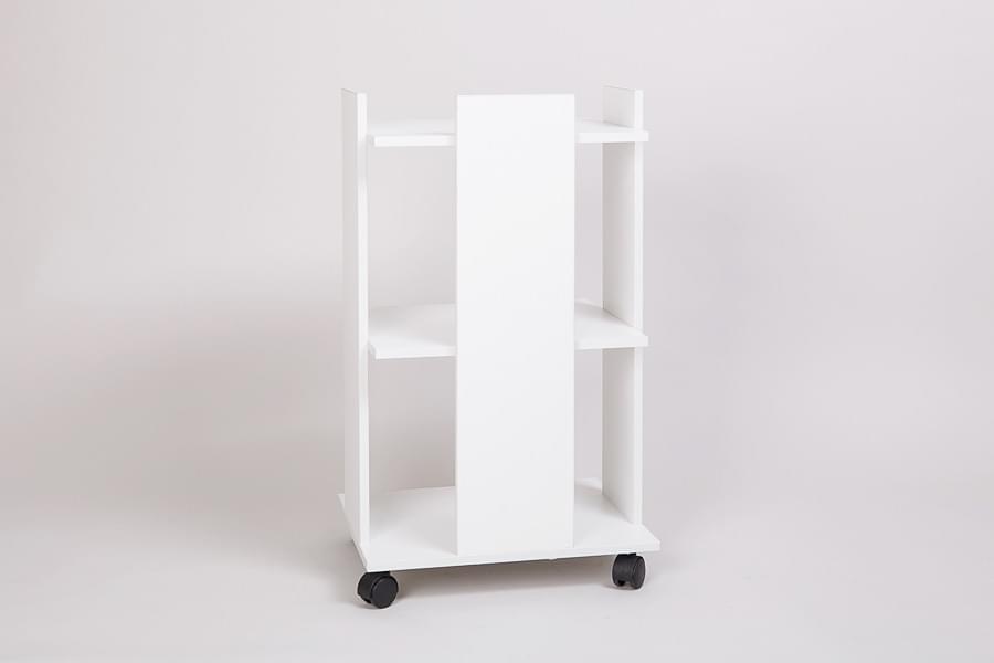 Лёгкая и эргономичная тележка косметолога модели СК-01 разработана специально для студий красоты. Изделие является воплощением многофункциональности и поможет рационально обустроить рабочее пространство специалиста. Конструкция тележки представляет собой тумбу без дверок с тремя открытыми полками из ламинированного ЛДСП. Материал является прочным и устойчивым к любым внешним негативным воздействиям (влажность, перепады температуры, использование химических средств).