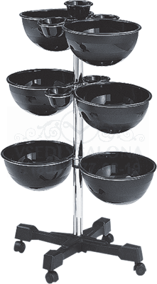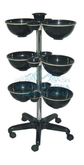 Тележка парикмахерская для краски и бигудей: передвижная на хромированной стойке с черным пластиковым пятилучьем, с 6-ю большими и 5-ю малыми пластиковыми чашами.