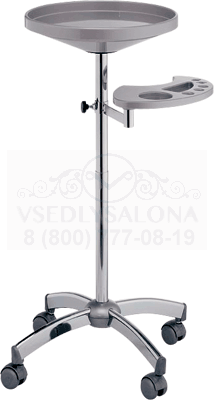 Размеры:Д40 х Ш40 х В90 см Тележка парикмахерская, передвижная на хромированной стойке, с хромированным пятилучьем, с плоской круглой поверхностью, с подвижной панелью с отверстием для кисточек. Стандартные цвета: черный.