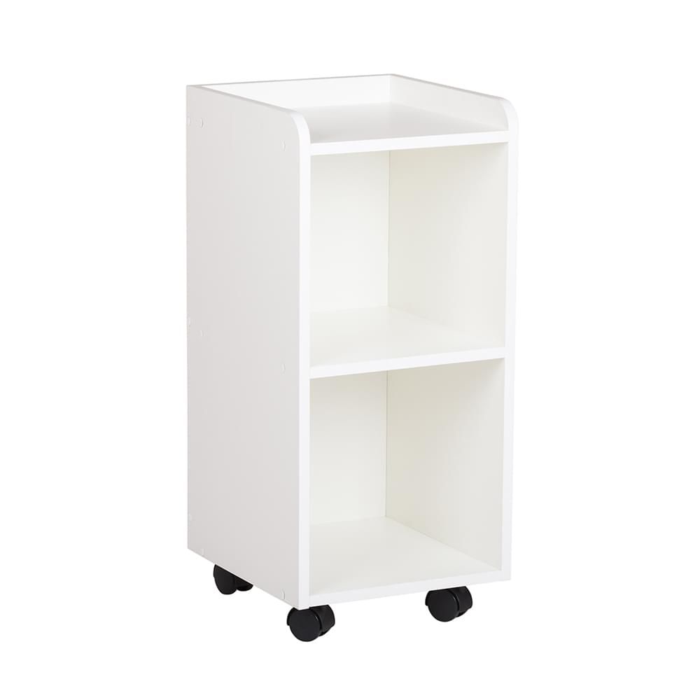 Тележка представляет собой тумбу на колесных опорах с двумя открытыми отделениями.