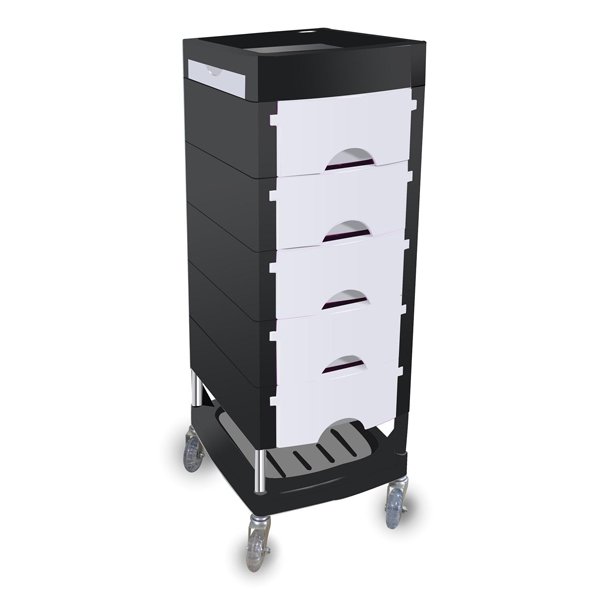 Незаменимый помощник в любом салоне и является крайне вместительным предметом, благодаря 5 закрытым пластиковым ящикам и одному компактному боковому столику есть возможность увеличить рабочую поверхность. Материал каркаса- металл, изделие установлено на колесную базу, что делает его крайне мобильным. Ввиду своего лаконичного дизайна и небольших размеров, она прекрасно впишется в любой интерьер.