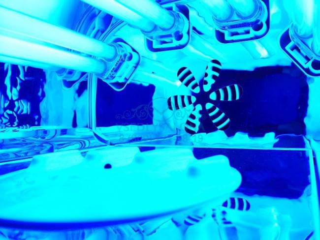 Закрывающаяся крышка позволяет уберечь глаза клиента от УФ излучения.