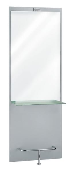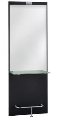Зеркало парикмахерское одностороннее прямоугольной формы, крепление к стене. Каркас выполнен из ламината серого или бежевого цвета, плоская стеклянная столешница. Металлическая подставка под ноги. Размер (ДхВхШ): 70х200х27